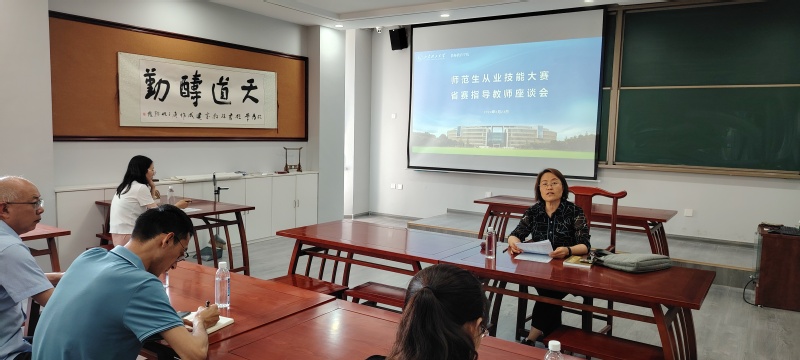 4月23日下午,太阳集团tyc151cc在教师技能实训中心207教室,组织师范生从业技能大赛省赛指导教师座谈会暨省赛决赛动员会,各师范类专业所在公司负责大赛的老师和指导教师,太阳集团tyc151cc相关教师参加交流,会议由太阳集团tyc151cc经理郑兆青主持。