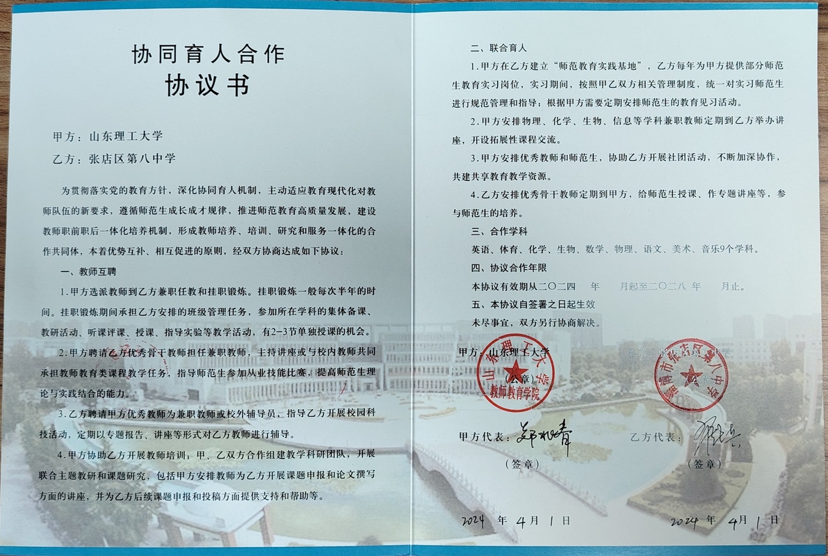 太阳集团tyc151cc与张店区第八中学签定协同育人合作协议