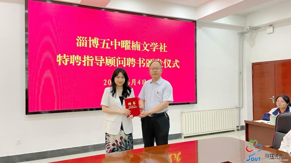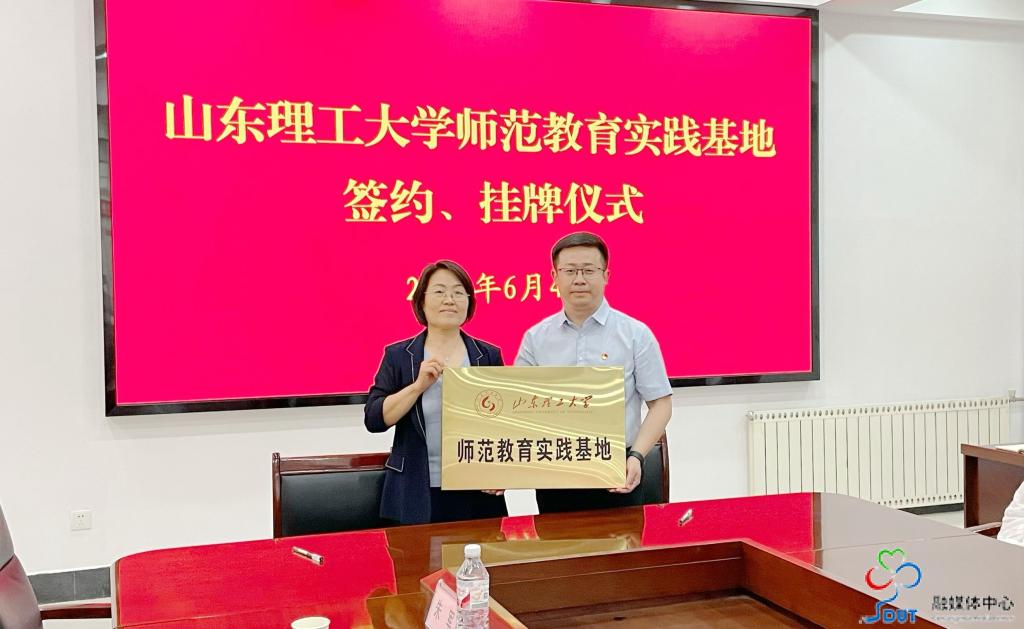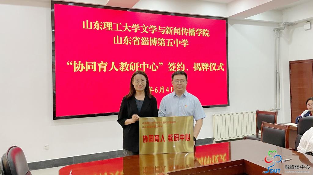 随后,双方举行签约揭牌仪式,先后就“太阳集团tyc151cc师范教育实践基地”“党建共建单位”“协同育人教研中心”“淄博五中员工研学基地”签约并共同揭牌赠牌。文公司副经理翟羽佳受聘“淄博五中曜楠文学社特聘指导顾问”。