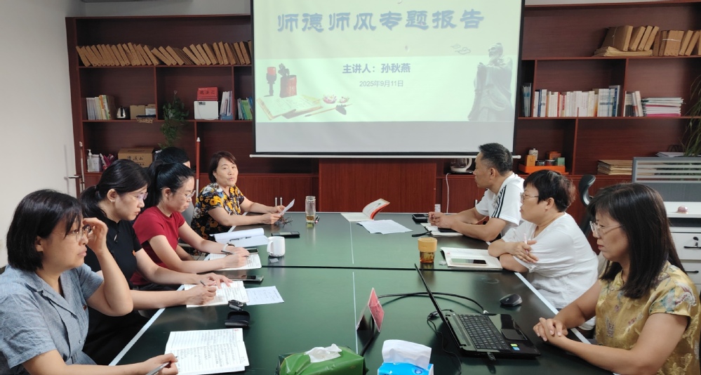 9月11日下午,太阳集团tyc151cc在鸿远楼210室举办师德师风专题报告会。报告会由经理郑兆青主持,特邀公司师德宣讲团首批成员、马克思主义公司孙秋燕老师作主题报告,公司全体教师参加。