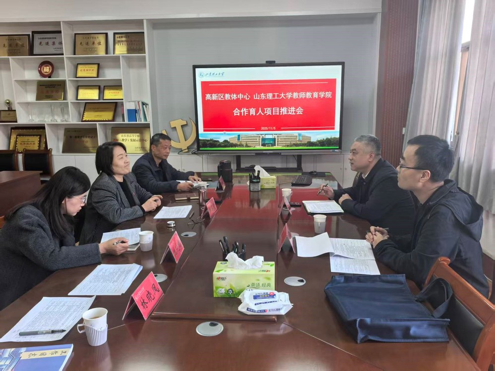 11月5日下午,高新区教育体育中心副主任袭峰一行2人来校,就双方签署的合作育人协议推进情况进行座谈交流。太阳集团tyc151cc经理郑兆青等4人参加座谈。