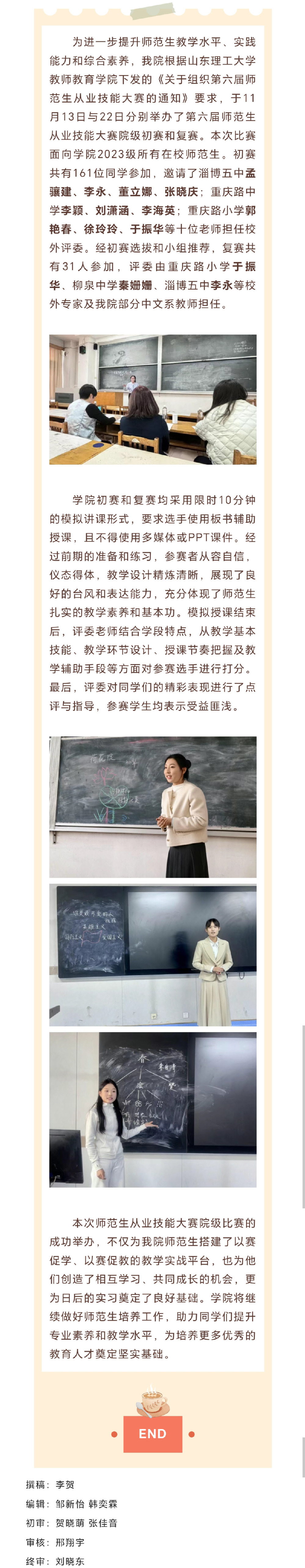 文学与新闻传播公司顺利举行第六届师范生从业技能大赛院级初赛、复赛